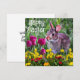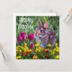Este cartão plano apresenta um desenho de vida selvagem da primavera, com um coelho selvagem e flores de tulipa. Há uma saudação de feriado "Feliz Páscoa" na frente e no verso. Você pode comprar como mostrado ou editar para adicionar seu próprio texto.