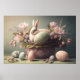 Esta poster apresenta uma ilustração colorida e lúcida de um belo coelho rodeado de ovos de Páscoa. As cores pastéis fazem deste poster a maneira perfeita de adicionar alguma alegria festiva à sua casa ou escritório nesta estação de Páscoas.