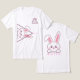 Este adorável design de coelhinho apresenta um coelhinho divertido em uma forma de triângulo de tendência. Uma obrigação para quem ama estilos bonitinhos e únicos. O esquema de cor rosa e branco e o design lúdico fazem dele uma peça versátil que pode ser vestida para cima ou para baixo.