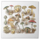 Um belo padrão de ilustrações de cogumelos antigos com salpicos de água castanhos no fundo. Um design ideal para cogumelos, fungos ou entusiastas florestais. Presente de aniversário perfeito, decoração infantil, arte infantil, decoração de quarto, decoração doméstica, presente de Natal ou presente para qualquer outra ocasião especial. Este design é também excelente para outono, decoração do outono.