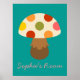 Um design adorável de cogumelos coloridos engraçados. Esta ilustração de crianças bonitinhas é perfeita para o quarto de uma menina. Tema de padrão colorido do cogumelo. A diversão das crianças. Nome personalizado para o quarto de criança.