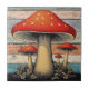 Cogumelos Vermelhos Retro Groovy em Madeira Rústic