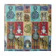 Um azulejo cerâmico com uma coleção única e colorida de animais do tipo arte popular em um design de colagem. Uma variedade de animais é encontrada nesta design artística criativa, que inclui uma cobra, leão, cão, lagarto, avestruz, zebra, coelho, lagartixa, burro e coruja. Este design tem um estilo único com um talento esquisito e excêntrico. Eu gosto!