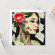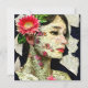 Bonito mulher com flor rosa em sua colagem de arte capilar.