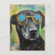 Colagem de cachorro com óculos no cartão postal