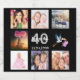 Uma etiqueta para uma festa de aniversário de 40 anos, celebrando sua vida com uma colagem de 8 fotos suas. Modelos para um nome, 40 anos e uma data. Data de nascimento ou data da festa. Letras brancas e cinzas coloridas. Fundo negro elegante.