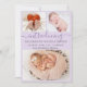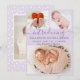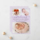 Menina Pastel Lilac Lavanda Nascimento Anúncio 3 Cartões de Colagem de Fotos. Anúncio de nascimento elegante com 3 fotos de seu bebê favorito na frente, com um bonito texto escrito à mão "introduzindo" em um roteiro suave de caligrafia com fonte de cauda-suja em fundo lilás, lavanda ou roxo leve. Adicione o nome do seu bebê à frente e à natalidade. Na parte de trás, uma foto vertical do bebê em um plano de fundo lilático macio de pontos brancos. Você pode personalizá-lo facilmente.