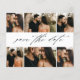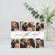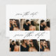 Colagem de Fotos de Casamento com Script de Orçamento Salve a Data com bela caligrafia na frente. O verso tem os nomes do casal e detalhes do casamento e site. Clique no botão editar para personalizar este design.