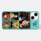 Multifotografia, capa de telefone personalizada para iPhone ou outro. Fundo de madeira azul com cinco modelos para carregar fotos da família, férias, animais de estimação ou bons tempos. Faz um presente de excelente para o duro comprar para a cara. Pais e avós vão adorar!