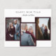Cartão de saudação de 3 fotos de colagem Elegante de Orçamento de Ano Novo. O verso tem mensagens e fotos personalizadas que você também pode editar. Apresenta quadros vermelhos para fotos. Projetado para casais recém-engajados ou casais casados, mas também pode ser usado por famílias.