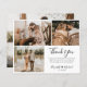 Orçamento, Moderno, Elegante, Casamento Com Mão (3) Cartões de agradecimentos De Colagem De Fotos. modelo de cartões de agradecimentos de casamento com três fotos na frente e uma foto na parte traseira. Com o texto "Obrigado" em uma fonte de script tipográfico escrita, escrita à mão, com traços em preto sobre fundo branco. Um pouco de coração entre os nomes. Adicione seu nome personalizado e sua mensagem de obrigado. Se preferir escrever manualmente a sua nota, basta eliminar o texto de amostra para obter mais espaço.