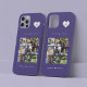Adicione nove famílias, crianças, animais de estimação ou melhores imagens de amigos e crie a sua bela capa de telefone de colagem fotográfica com o seu nome de monograma dentro inicial um coração branco sobre um fundo feminino roxo. ++++++++++ Fácil de personalizar com suas imagens e letras quadradas personalizadas