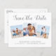 Salve A Data! Anuncie seu casamento a amigos e família com estes cartões salve a data modernos de colagem de fotos. Estes cartões postais de convite para casamento de orçamento precisam ser enviados como cartões postais de tamanho excessivo, de modo que podem incorrer em despesas de correio, mas não precisam de um envelope ou etiqueta de endereço de retorno. Personalize com 3 de suas fotos de noivado favoritas e personalize com nomes, data de casamento, local e site. Adicione qualquer outra informação na parte de trás. Estas únicas salvas as cartas causarão uma impressão duradoura, os seus hóspedes irão garantir que salvarão a data! COPYRIGHT © 2020 Judy Burrows, Black Dog Art - Todos Os Direitos Reservados. Colagem de Fotos Moderna do Orçamento Salvar a Data