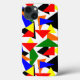 Esta capa de telefone tem um design Bauhaus de uma colagem de triângulos em vermelho, amarelo, laranja, azul e verde.