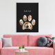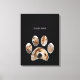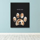 Mostre seu amor pelo seu animal de estimação com este design de colagem de fotos simples e fotógrafo personalizado e fofo nesta impressão canvas com o nome do seu animal de estimação junto com cinco fotos do seu animal de estimação em uma pata desenhada em branco sobre um fundo preto.