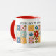 Uma caneca única e colorida com padrão de colcha de retalhos que as costureiras e artistas de costura vão adorar. Impresso com imagens de blocos de colcha de retalhos e flores bordadas com detalhes realistas. Uma legenda "Quando a vida lhe dá restos, faça uma colcha" pode ser editada para outro texto no editor fácil da Zazzle, se desejar. Personalize ainda mais com seu estilo favorito, seleções de tamanho e cor.