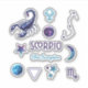 Celebre o espírito intenso e transformador de Escorpião com esta coleção de adesivos do zodíaco lindamente detalhada. Com arte celestial do Escorpião, da constelação de Escorpião, símbolo do zodíaco, símbolo do elemento Água e símbolo do planeta regente Plutão, este design é cercado por luas sonhadoras, planetas e estrelas para um clima cósmico mágico.
