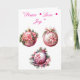 Celebre a beleza da época com este elegante cartão de Natal com três grandes bolhas cor-de-rosa adornadas com rosas e folhagem verde festiva. Um design de Natal feminino e chique, perfeito para enviar desejos calorosos de Natal a amigos, familiares e entes queridos.
