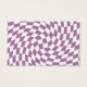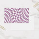 Produtos modernos de festa de casamento boêmio lilás roxo. Elegante e sofisticado tema de casamento com design xadrez distorcido retrô, pratos de papel xadrez distorcidos em lilás roxo e branco.