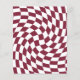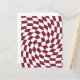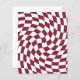 Produtos modernos de casamento com tema boêmio escuro na cor vermelho borgonha. Design xadrez retrô e elegante em papel ondulado para festas de casamento, pratos de papel xadrez ondulados em cores elegantes e sofisticadas, vermelho borgonha escuro e branco.