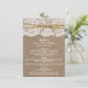 A coleção de casamento do arco gêmeo rústico é uma design com um adorável fundo de efeito de burlap, rústico, com uma trim romântica de efeito de renda branca vintage, terminou uma fita e um arco gêmeos. Esses cartões de menu podem ser personalizados para sua ocasião especial e faziam o menu perfeito para qualquer casamento rústico, chá de panela, festa de noivado, festa de aniversário e muito, muito mais. *Observe que o Zazzle só vende cartões de menu impressos para que essas placas não tenham nenhum material real de burlap, renda ou fio. EXIBIR ITENS CORRESPONDENTES PARA ESTA COLEÇÃO