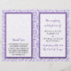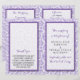 Simples mas elegante, a coleção de casamento paisley moderna é uma design impressionante que apresenta um belo impressão paisley em uma cor púrpura e branca macia, que é perfeita para qualquer celebração de casamento moderna. Esses programas podem ser personalizados para sua ocasião especial e tornariam a ordem perfeita de serviço para seu casamento, chá de panela, festa de noivado, festa de aniversário e muitas outras ocasiões especiais. Adicione seu texto personalizado a este design usando as caixas "Editar este modelo design" no lado direito do item, ou clique no botão azul "Personalizar" para organizar o texto, alterar as fontes e cores e também adicionar informações ou imagens adicionais a este design. EXIBIR ITENS CORRESPONDENTES PARA ESTA COLEÇÃO