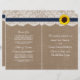 A coleção de girassol rústico é uma design impressionante que apresenta um adorável fundo de efeito de burvolta rústico com uma trim romântica de efeito de renda branca vintage, terminada com uma espinhante fita azul de girassol e marinho. Esses programas podem ser personalizados para sua ocasião especial e fariam a modelo perfeita para casamentos, chás de panela, festas de noivado, festas de aniversário e muito, muito mais. *Note que o Zazzle só vende produtos impressos para que este item não tenha quaisquer materiais reais de burlap, rendas, girassol ou fita. EXIBIR ITENS CORRESPONDENTES PARA ESTA COLEÇÃO