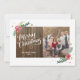 Adicione um toque festivo extra aos seus cartões de natal com este cartão com fotos de 1, com trabalho de arte de caligrafia manuscrita e folhagem desenhada à mão, tudo sobre um fundo de madeira rústico.