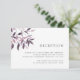 Cartão de recinto de recepção elegante e rústico para casamentos de outono ou inverno apresenta um spray de folhagem de outono em tons suaves de rosa beijo, mauve, lavanda e ameixa borgonha em aquarela. Personalize com as informações da recepção do seu casamento, incluindo horário, local e quaisquer informações adicionais, como estacionamento ou transporte. Projetado para combinar com nossa coleção de convites Harvest Blush.