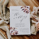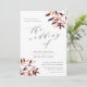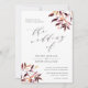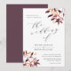 O convite elegante para o casamento russo apresenta uma carta escura de ameixa castanha em bloco chic e itálico com sotaques de caligrafia, com pulverizações de folhagem de cascata nos cantos em tons ricos de colheita de outono de púrpura e ouro plum.