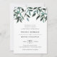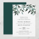 O convite para casamento elegante e russo apresenta letras ricas fora de preto em blocos quicos e itálicos, tocado por uma borda de folhagem de cascata em tons exuberantes de sábio, floresta e verde caçador. Os fundos de convite são verdes escuros e sólidos.