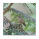 Imagem do colibri do bebê com o hummer que senta-se na borda de seu ninho e que cola para fora sua língua. O ninho é feito fora do líquene e senta-se em uma árvore de cedro na floresta. Esta foto encantador do colibri pode ser imprimida em muitos produtos customizáveis diferentes.