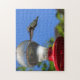Colibri que inspeciona um quebra-cabeça do alimentador