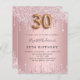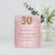 Um convite moderno, na moda e glamouroso para um aniversário de 30 anos. Um rosa empoeirado, cor-de-rosa, fundo metálico de aparência falsa, com pingar falso, pintura pingando. O nome é escrito com um moderno e escuro, rosa dourado, escrito com letra de estilo manuscrito. Personalize e adicione os detalhes da sua festa. O número 30 é escrito com uma fonte de estilo de balão, script.