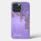 Capa de telefone elegante feita em um olhar de película roxa com púrpura esfarrapada e tinta dourada escorrendo, do topo da caixa. Personalize o texto para si mesmo ou como uma ideia de presente para ela.