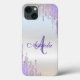 O brilho violeta moderno goteja sobre um fundo prateado com seu nome.