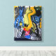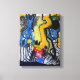Collages Bruyants é um livro de artista feito em 1986. Durante muitos anos criei livros e cadernos que mostrei apenas a algumas pessoas. Eles nunca foram expostos e eu não tentei vendê-los. O tempo amarelou poucas páginas. Aqui está o primeiro desenho. As colagens virão gradualmente nas páginas a seguir. Para evitar quebrar a ligação do livro fotografei o livro sem placa de vidro e por isso há um leve gradiente da cor de fundo do papel e, às vezes, uma aparência abaulante. Aqui está a 16ª página: cada vez mais delirante. Colagem/desenho original é cortado para esta impressão de tela. — Peth de longues années j'ai réalisé des livres et des carnets que je montrais que à quelques personnes. Ils n'jamais vistas exposés et je n'ai pas cherché non plus à les vendre. Deixa-me tirar-te uma jaiuni quelques. Ici c'est le premier sobremesa. Les colage viendront peu à peu au fil des pages suivantes. Pour ne pas casser la reliure j'ai photographié le livre sans plaque de verre et c'est pour cela que'il y a un léger dégradé de la couleur de fond du papier et un face bombé.