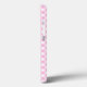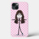 Garota fixe com óculos, cabelo e tênis azuis em um fundo branco e rosa de gingham. O plano de fundo pode ser alterado.