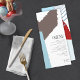 Bloqueio de cores em abstrato num alegre paleta de cor de inverno de blues e vermelho de tijolo fornece um fundo impressionante para as peças desta suite de casamento contemporânea. O cartão 'Menu' do casamento mostrado aqui é uma adição chamativa à sua decoração de mesa. Adicione as seleções de menu, as iniciais e a data do casamento usando a modelo fornecida. Procure ID740 para ver outras opções de cores e produtos adicionais com este design.