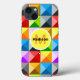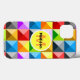 Personalize um presente de diversão único com seu nome e nome iniciais. Muitos triângulos em cores amarelas, laranja, vermelhas, cor-de-rosa, azuis, verdes criando o divertido padrão geométrico moderno.
