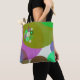 A modern abstract tote bag featuring colorful circular floral shapes floating freely on a soft, artistic background.