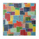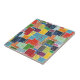 Colorful abstract patchwork pattern ceramic tile featuring bold geometric blocks filled with playful scribbles, dots, stripes, and textured shapes in vibrant red, yellow, blue, green, and orange. Energetic and modern with a handcrafted aesthetic, this seamless design is ideal for maximalist style lovers, abstract art fans, creative minds, and colorful decor enthusiasts.