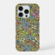 This is a happy floral piece with orange, pink, blue. green and white petals doodled freely across the garden green background.