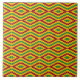 Colorful African Kente pattern in bright yellow, maroon and green.