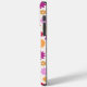 Colorful flower pattern in yellow, orange, pinks, lilac and reds on a cream color background.