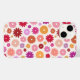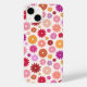 Colorful flower pattern in yellow, orange, pinks, lilac and reds on a cream color background.