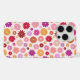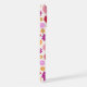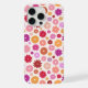 Colorful flower pattern in yellow, orange, pinks, lilac and reds on a cream color background.