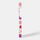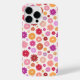 Colorful flower pattern in yellow, orange, pinks, lilac and reds on a cream color background.