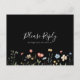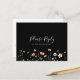 This colorful garden wildflower menu choice rsvp postcard is perfect for a rustic wedding. The design features seamless hand-painted burgundy, red, navy, blue, yellow, and blush wildflowers with botanical leaves in a black background.