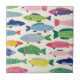 Vibrant coastal-inspired pattern ceramic tile featuring colorful sardines in a playful sketch style. Set against bold abstract brushstrokes in bright hues, this lively design captures a modern Mediterranean aesthetic. Ideal for ocean lovers, seafood enthusiasts, and fans of bold, artistic coastal themes.